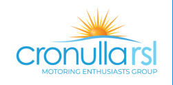 Postal Address : Motoring Enthusiasts Group Cronulla RSL, 38 Gerrale Street Cronulla NSW 2230